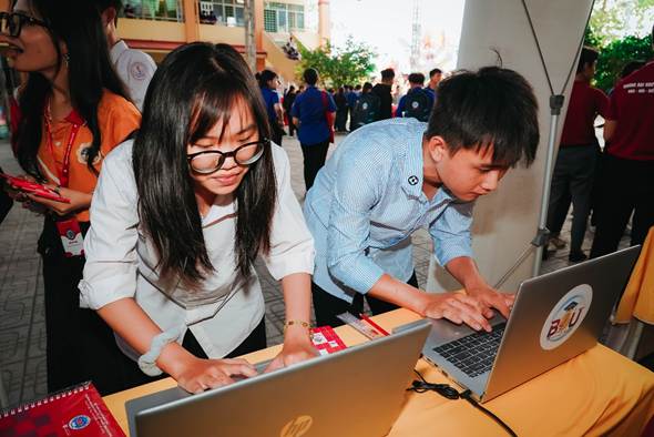 Đáng chú ý, khu vực trải nghiệm STEM – AI do giảng viên và sinh viên ngành Công nghệ thông tin hướng dẫn đã thu hút sự quan tâm của đông đảo học viên. Tại đây, các em được trực tiếp trải nghiệm các mô hình ứng dụng công nghệ, tìm hiểu những sản phẩm thực tế do sinh viên BDU thực hiện, từ đó hình dung rõ hơn về môi trường học tập và cơ hội nghề nghiệp trong lĩnh vực công nghệ.